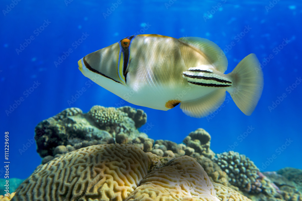 Picasso triggerfish (Rhinecanthus aculeatus) on the coral reef - Red Sea - Red sea fish