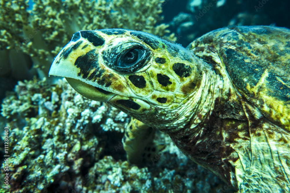 Loggerhead sea turtle Caretta caretta on the coral reef - detail