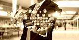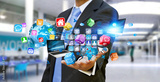 Businessman holding multimedia tech devices in his hand