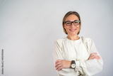 Beautiful woman smiling with crossed arms. Happy Self-Assured Woman On Isolated Background. Happy female designer standing isolated