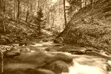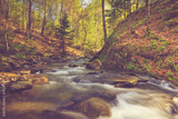View of clear mountain river and rapids.