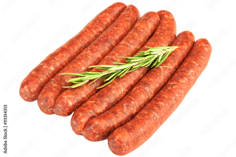 Sausages Made Of Chorizo Mince In Natural Casing White Isolated