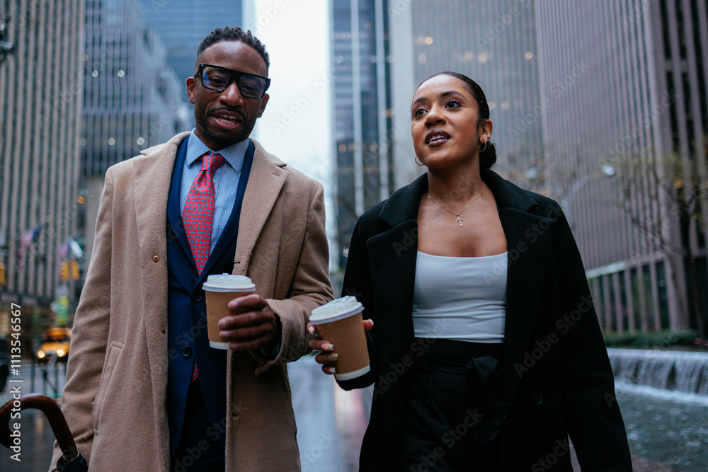 Two business colleagues walking and talking in new york city