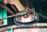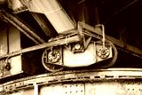 View of an old crane at the harbor in Duisburg. Industrial port on the Ruhr.