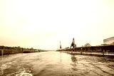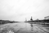 View of the surrounding area at the harbor in Duisburg. Industrial port on the Ruhr.