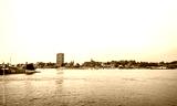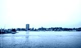 View of the surrounding area at the harbor in Duisburg. Industrial port on the Ruhr.
