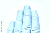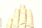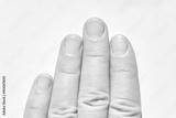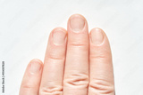Close up of caucasian female hand with natural short fingernails on a white background.