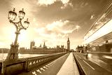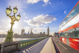 London, England - Westminster Bridge and Big Ben with iconic Red Double Decker Bus on the move