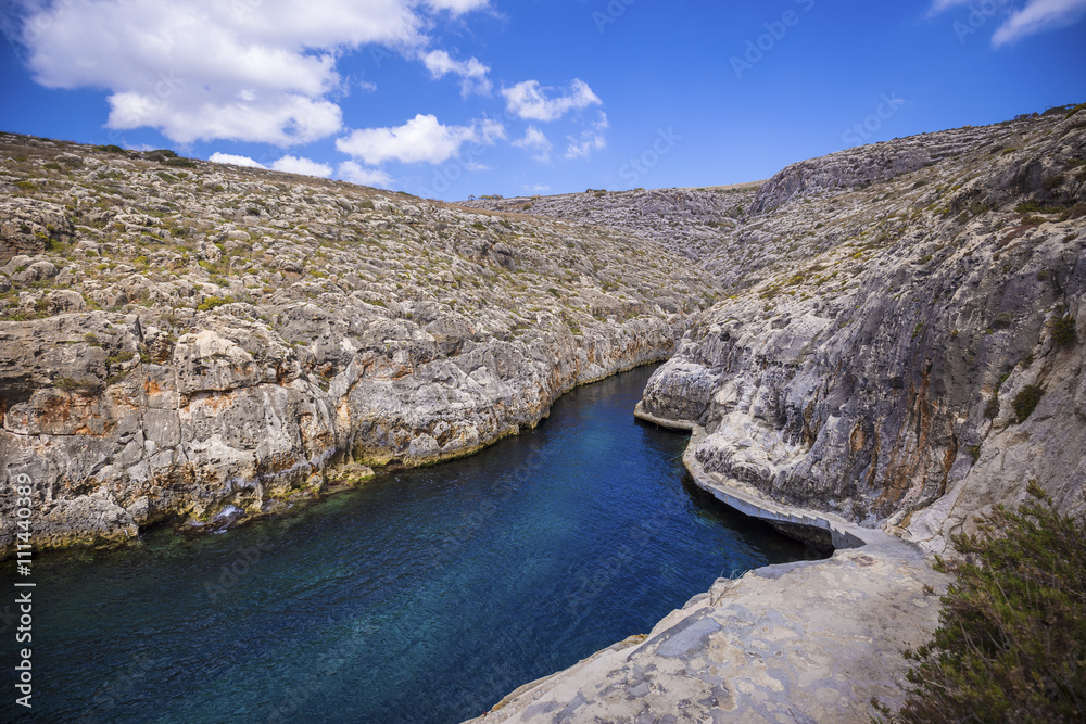 Blue Grotto with blue sky and clouds on a sunny day, Malta