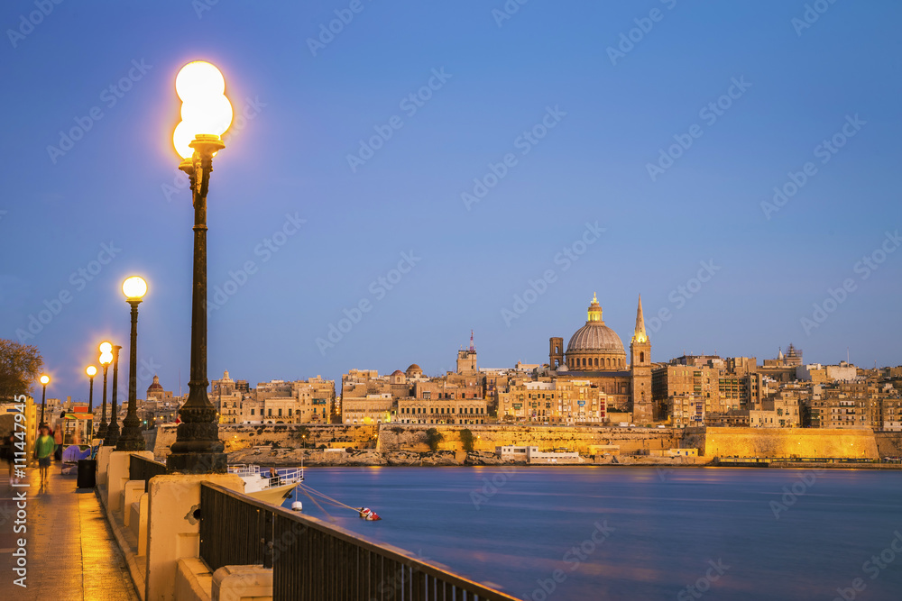 Malta - Valletta with St.Paul's Cathedral at blue hour