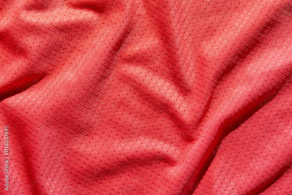 Texture of red fabric with subtle geometric patterns and soft drapery folds.
