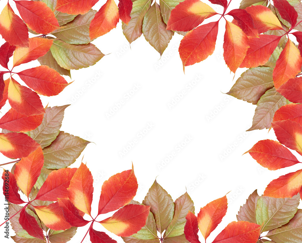 Yellow and red leaves of Parthenocissus quinquefolia in frame shape on isolated background