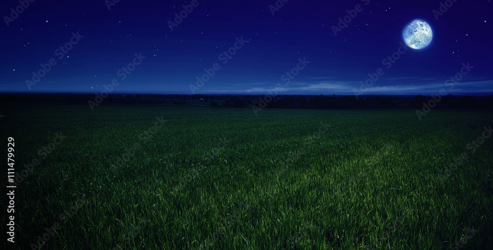 moonlit night in wheat field