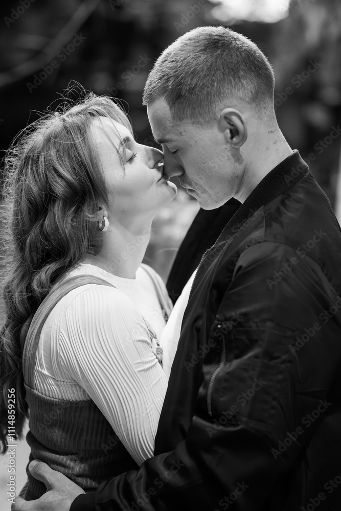 Intimate Black and White Portrait of a Couple Sharing a Kiss