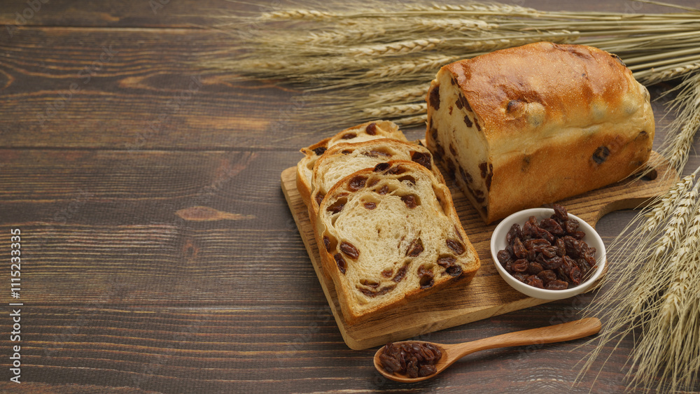レーズンパン・イメージ|レーズンパンとレーズンと麦穂