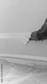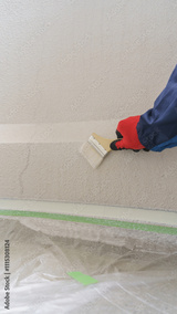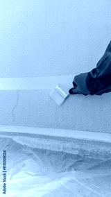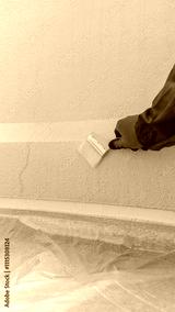 外壁塗装の養生|マスカーで床を養生した外壁を塗装する
