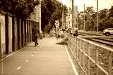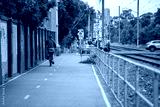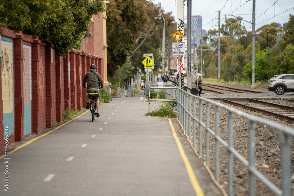 sydney road melbourne with a traffic jam with people walking and riding bike in a melbourne lifestyle with hipsters