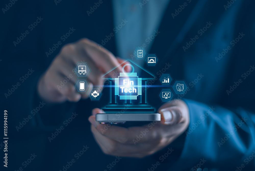 FinTech, Financial technology, Digital banking, AI, Online banking economy and digital money. Businessman with finance investment, artificial intelligence technology