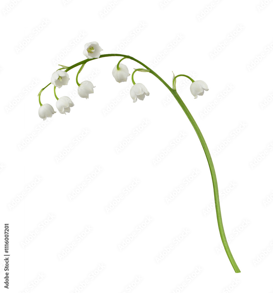 Closeup of Lily of the valley flowers isolated on white or transparent background