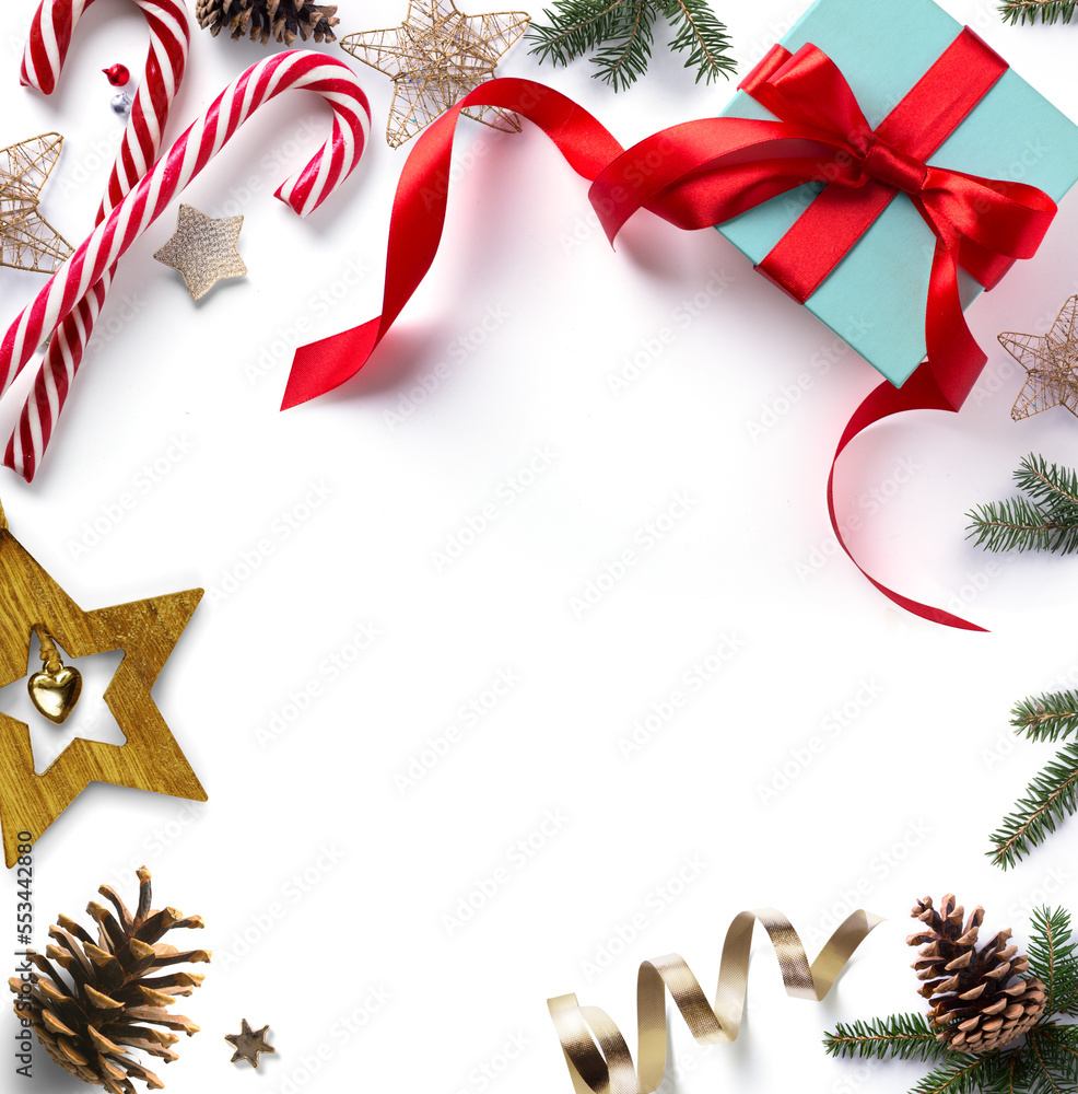 Elegant Gold Decorated Christmas Gift Box on a Cozy Sofa