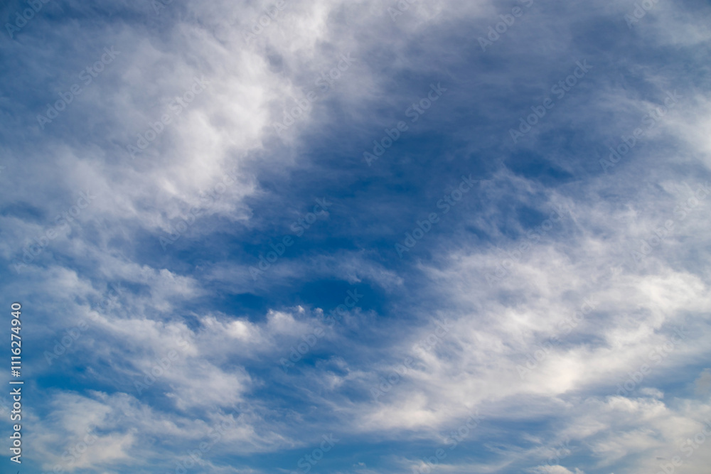 Blue sky cirrus clouds.