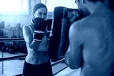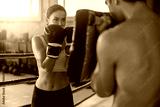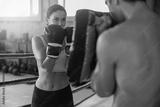 An intense and focused training session with a dedicated boxer meticulously practicing techniques in a gym setting