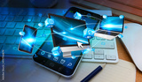 Tech devices connected to each other by mobile phone