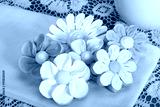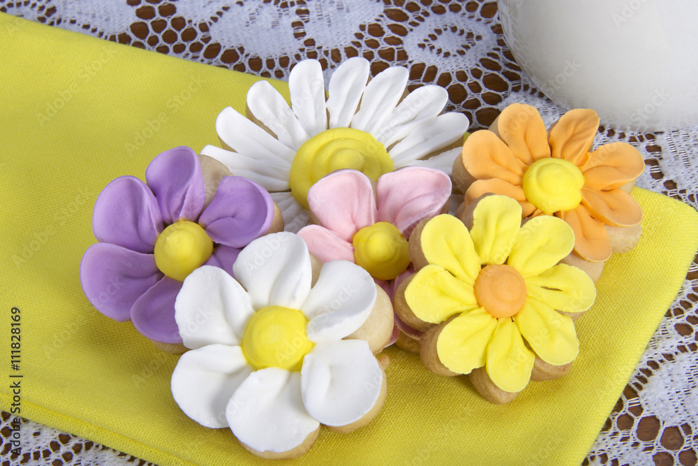 Home made designer Flower Sugar cookies on yellow napkin