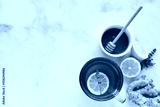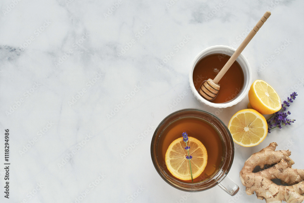 Lemon ginger tea with honey and lavender.