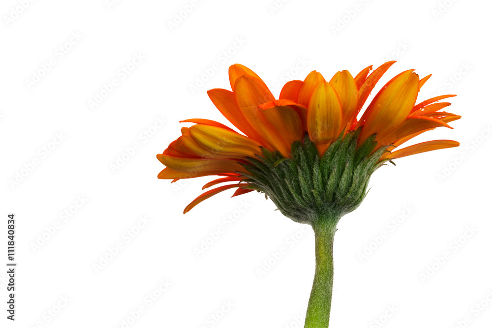 Orange Gerbera daisy against a white bckground