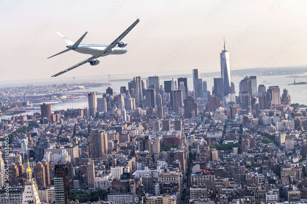 Plane over Manhattan, NYC