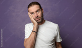 feeling stupefied and scared, fearing something frightening, with hands open up front saying stay away