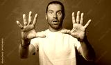 looking confident, angry, strong and aggressive, with fists ready to fight in boxing position