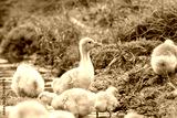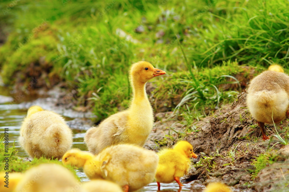 colorful flock of goslings