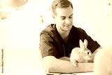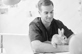 Professional young veterinarian is examining an animal