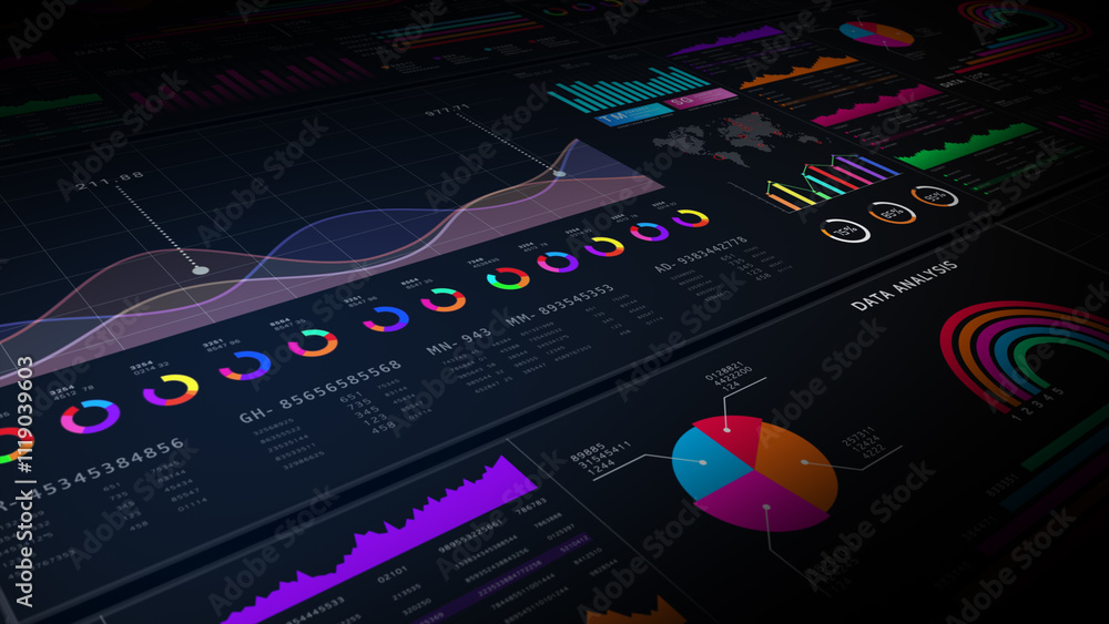 Data analytics for business, strategy financial investment background, Professional data dashboard showcasing charts, graphs, and analytics for finance, trading, and business insights. 3d Rendering