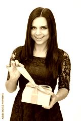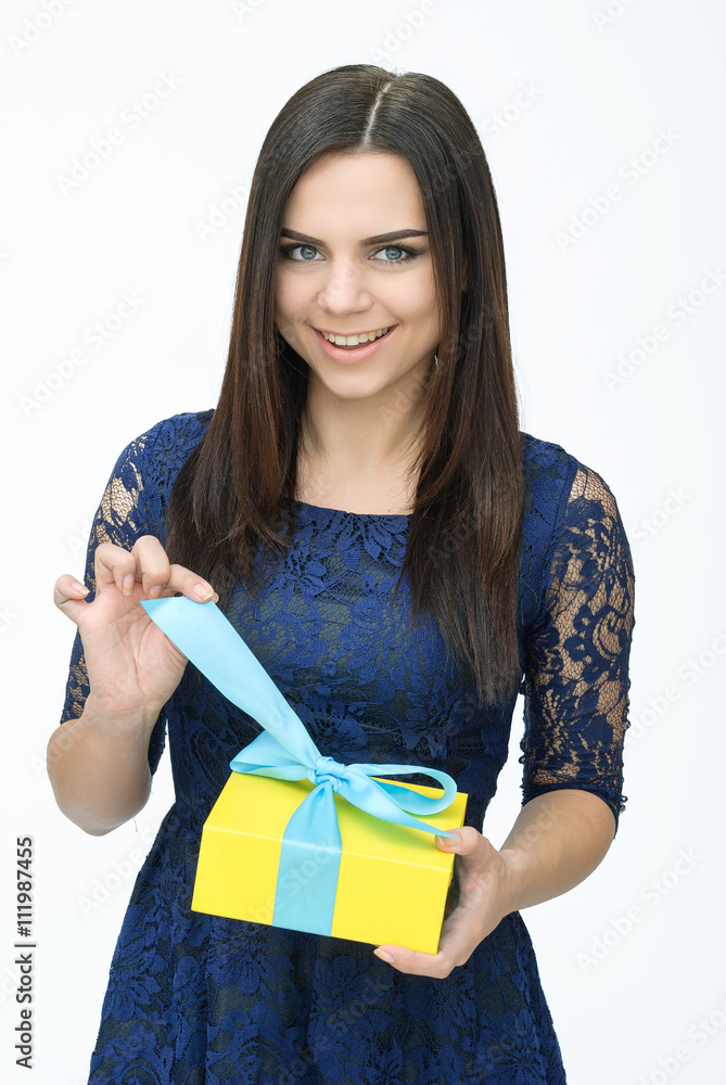 Young woman portrait holding gift