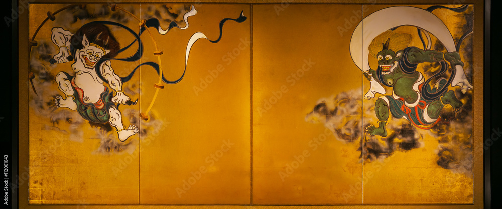 Ancient paintings of Wind and Thunder Gods at Kenniji Temple in Kyoto, Japan