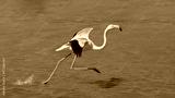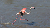 Running greater flamingo (Phoenicopterus roseus), Camargue, France