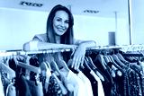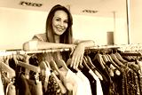 Sales assistant leaning on a clothing rail