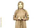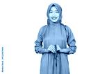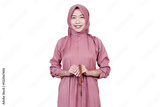 Asian Muslim woman in hijab with prayer beads, greeting gesture isolated transparent