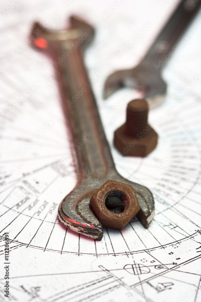 wrench,nut and bolt