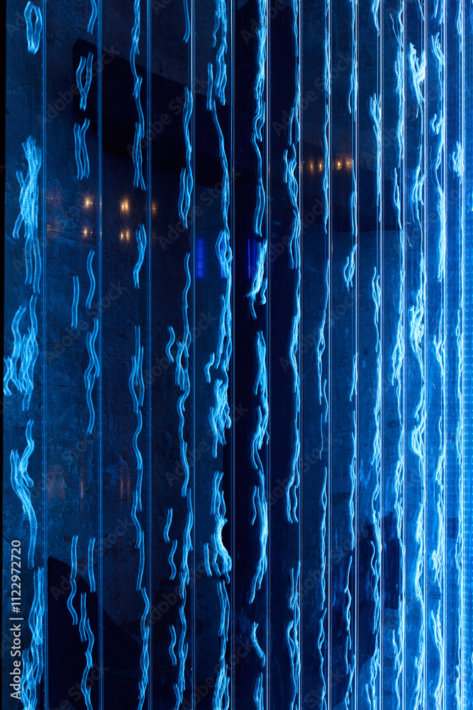 An Illuminated Blue Waterfall Featuring Abstract Artistic Patterns for Visual Aesthetics