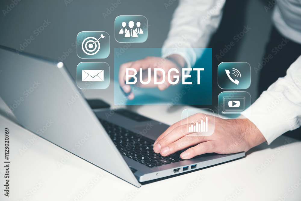budget text on virtual screen.