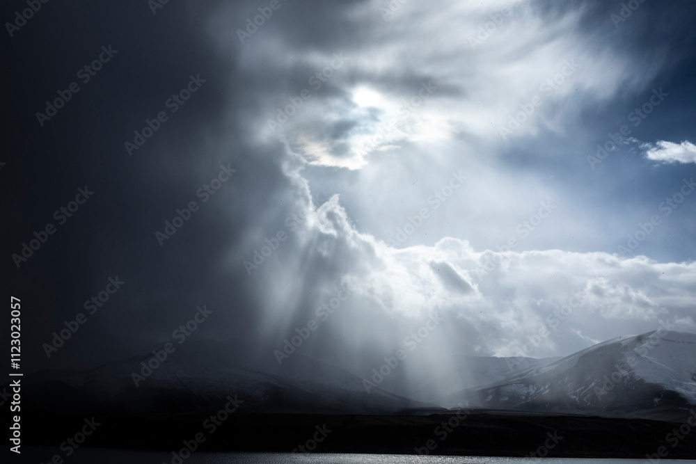 beautiful landscape with lake and mountains