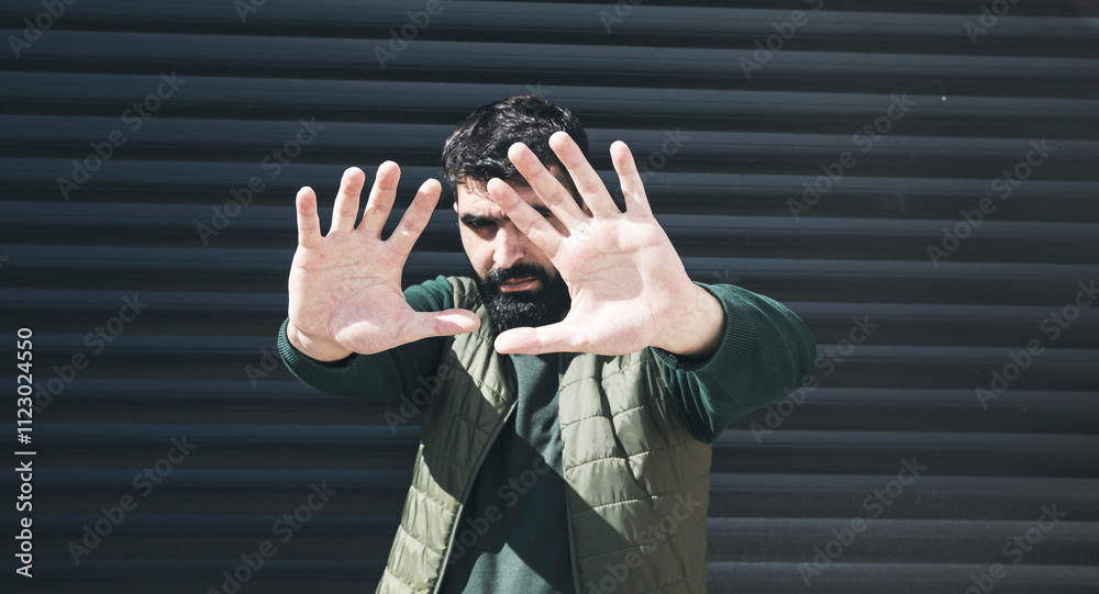man showing stop sign