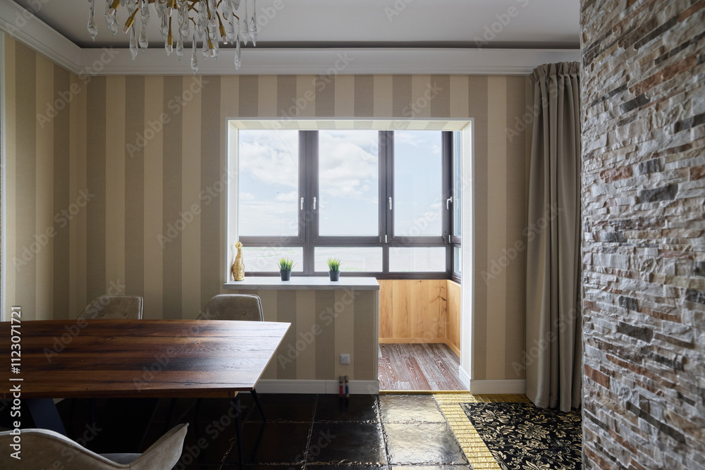 A Contemporary Dining Area featuring a Scenic View that enhances the overall atmosphere