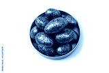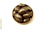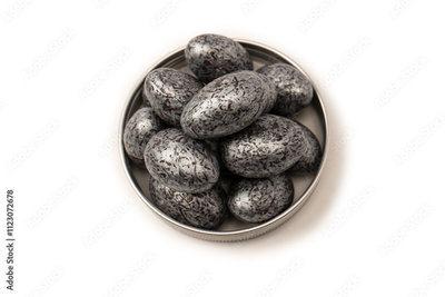 Chocolate silver eggs isolated on a white background.