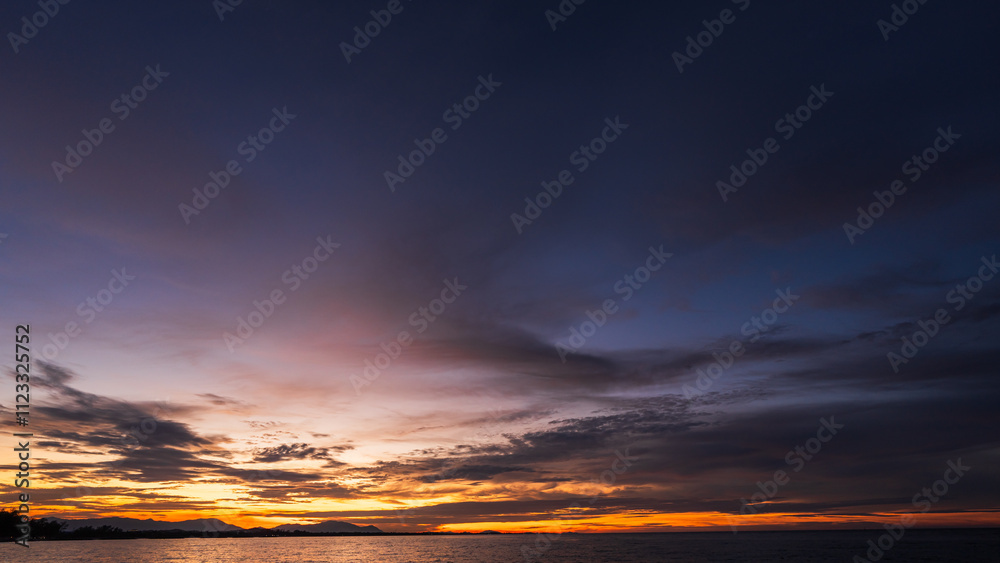 sunset over sea in the evening on twilight