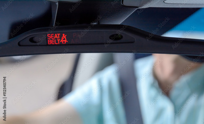 Seatbelt sign showing on the Car Rearview Mirror